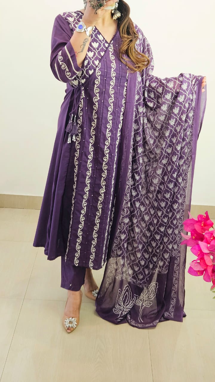 Step into timeless elegance with our Pure Cotton Angrakha Kurta Set, crafted for women who love comfort wrapped in luxury