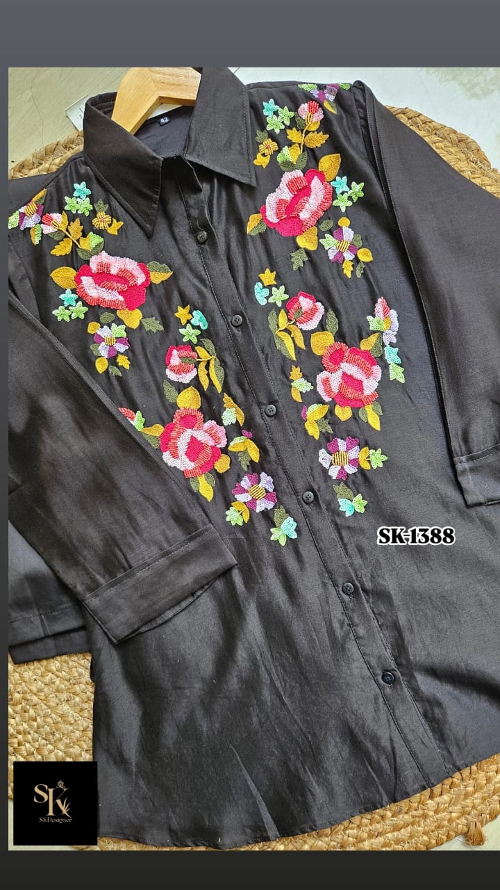 Work: Exquisite handwork with sequins, beads & fine thread embroidery