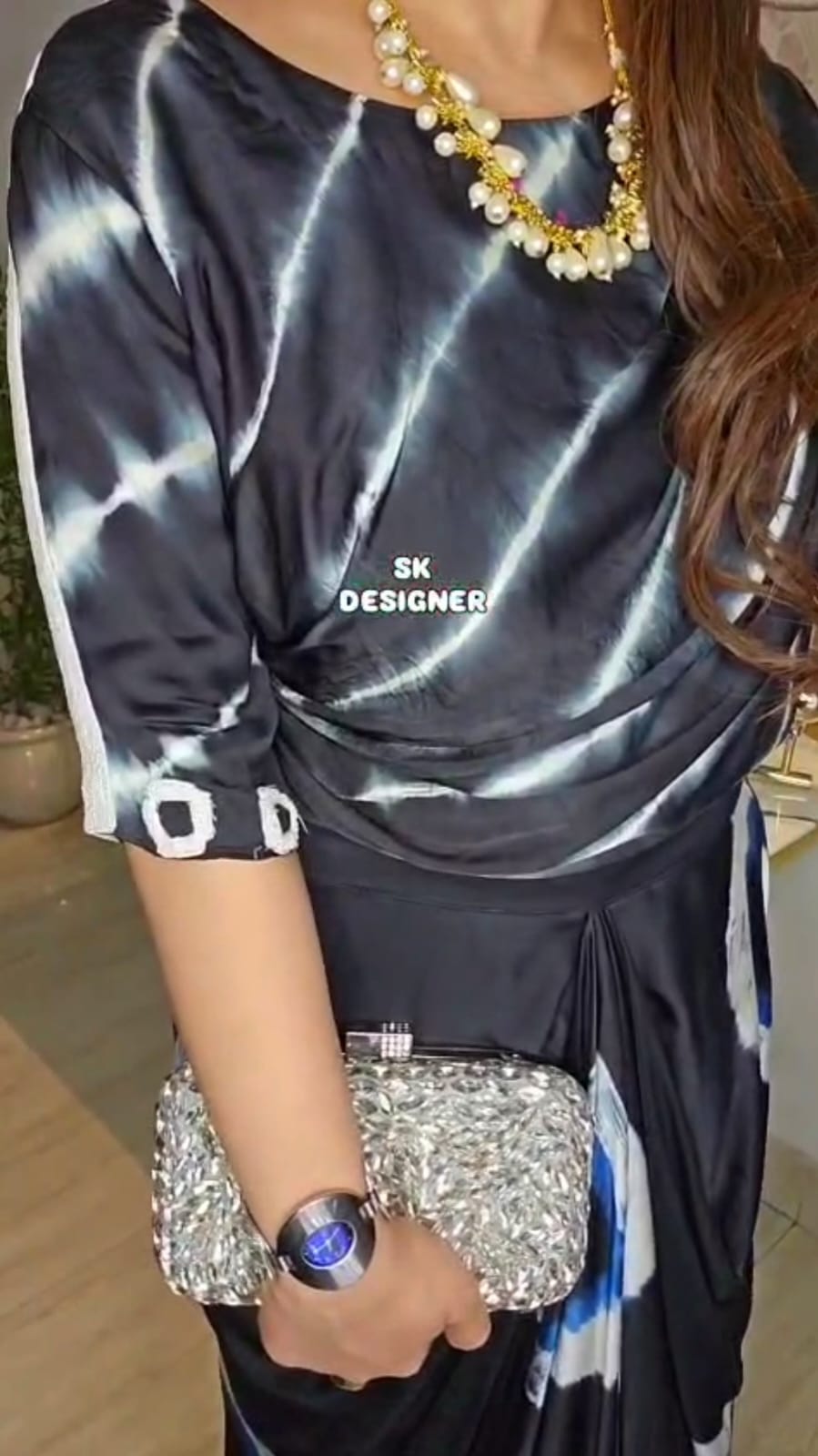 Unveil your inner diva with our trending draped sets, crafted in pure crepe for a perfect blend of elegance and comfort. From bold red to elegant black, this outfit is designed to make heads turn at every festive soirée and cocktail night. The luxe tie-dye effect with pearl work detailing on the shoulders adds a glamorous edge to this statement piece.