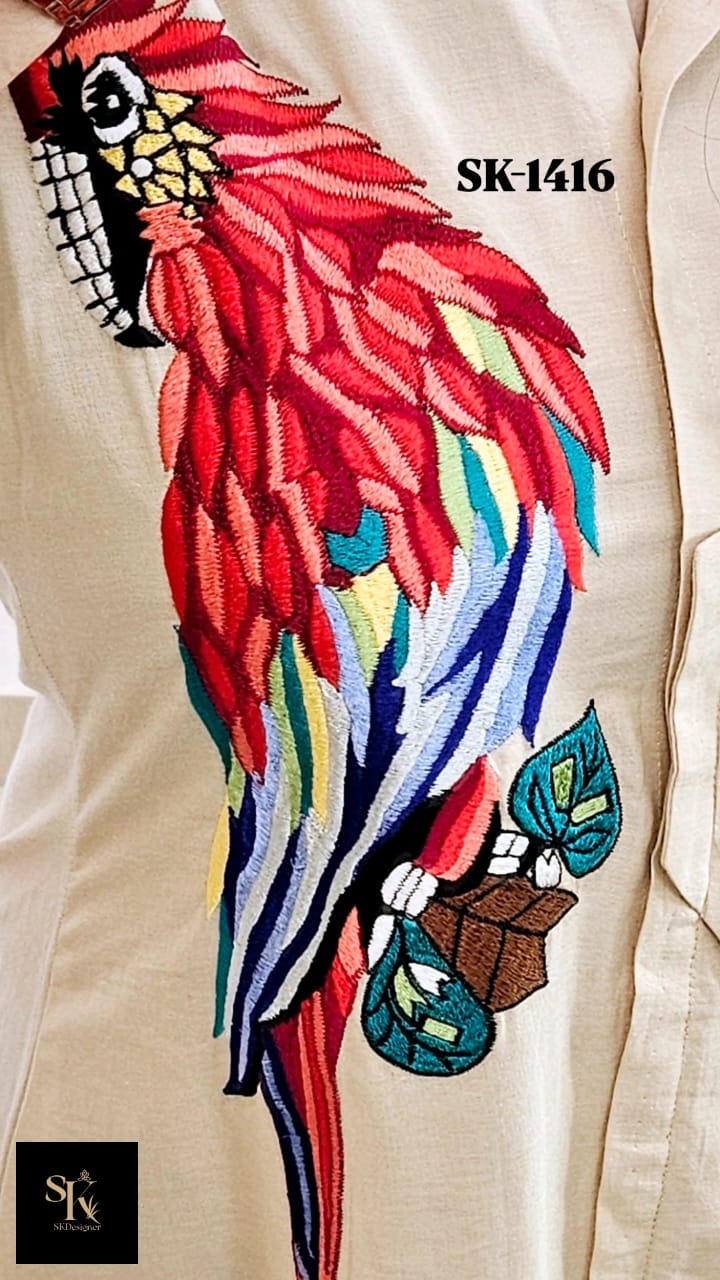 This pure premium cotton midi dress is designed for women who love playful elegance. Featuring bold & colourful parrot embroidery that adds a touch of luxe, this dress is perfect for turning everyday moments into style statements. Its soft, breathable fabric keeps you comfortable all day while the 47-inch length ensures a chic, graceful silhouette.