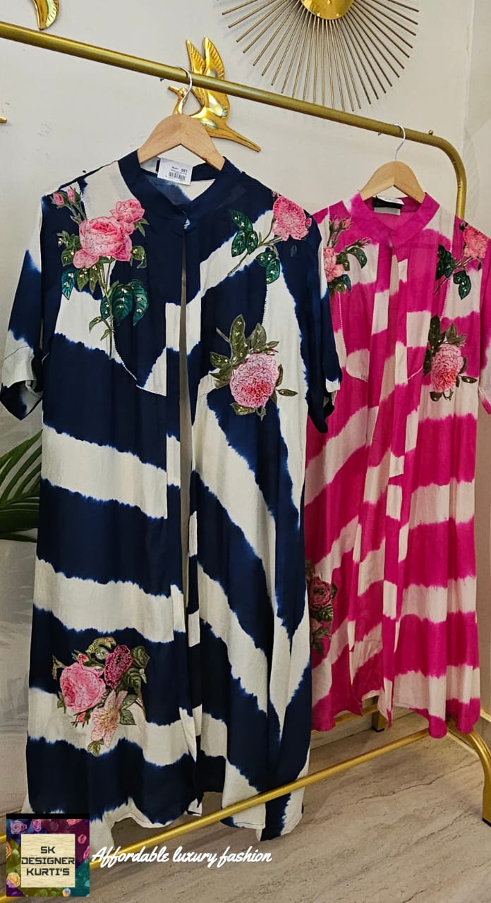 Elevate your festive and party wardrobe with this premium cotton silk inner paired with a detachable cotton silk tie-dye jacket. The jacket features heavy applique artistry and intricate pearl detailing, blending traditional craftsmanship with a modern silhouette. A versatile piece that promises luxury, comfort, and timeless charm.