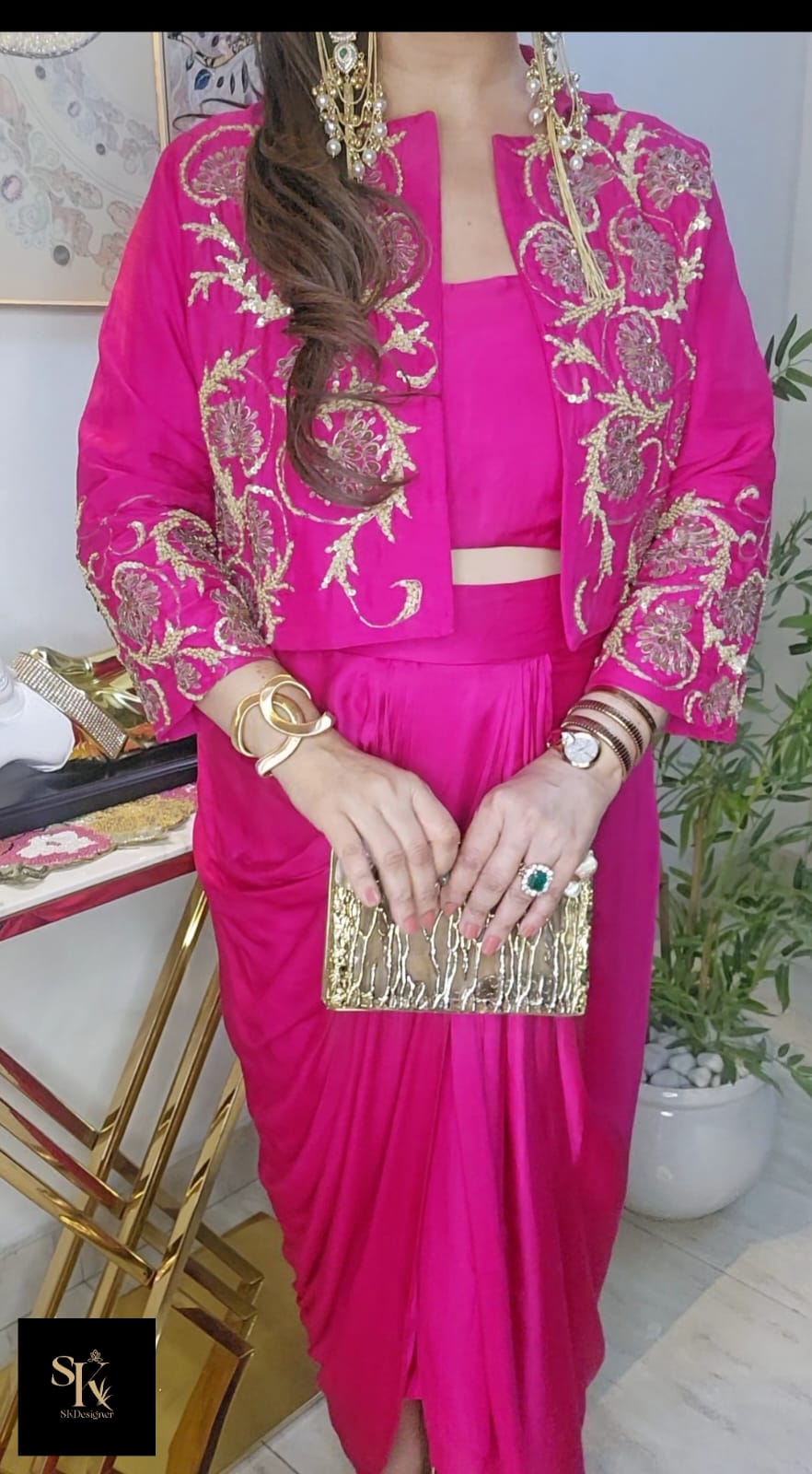 Step into effortless elegance with our Pure Crepe Party Wear Collection. This signature ensemble features a fluid drape skirt paired with an intricately handworked silk jacket, blending timeless charm with modern sophistication. Perfect for glamorous evenings — sangeet nights, cocktail soirées, or festive celebrations — this look turns heads with every step.